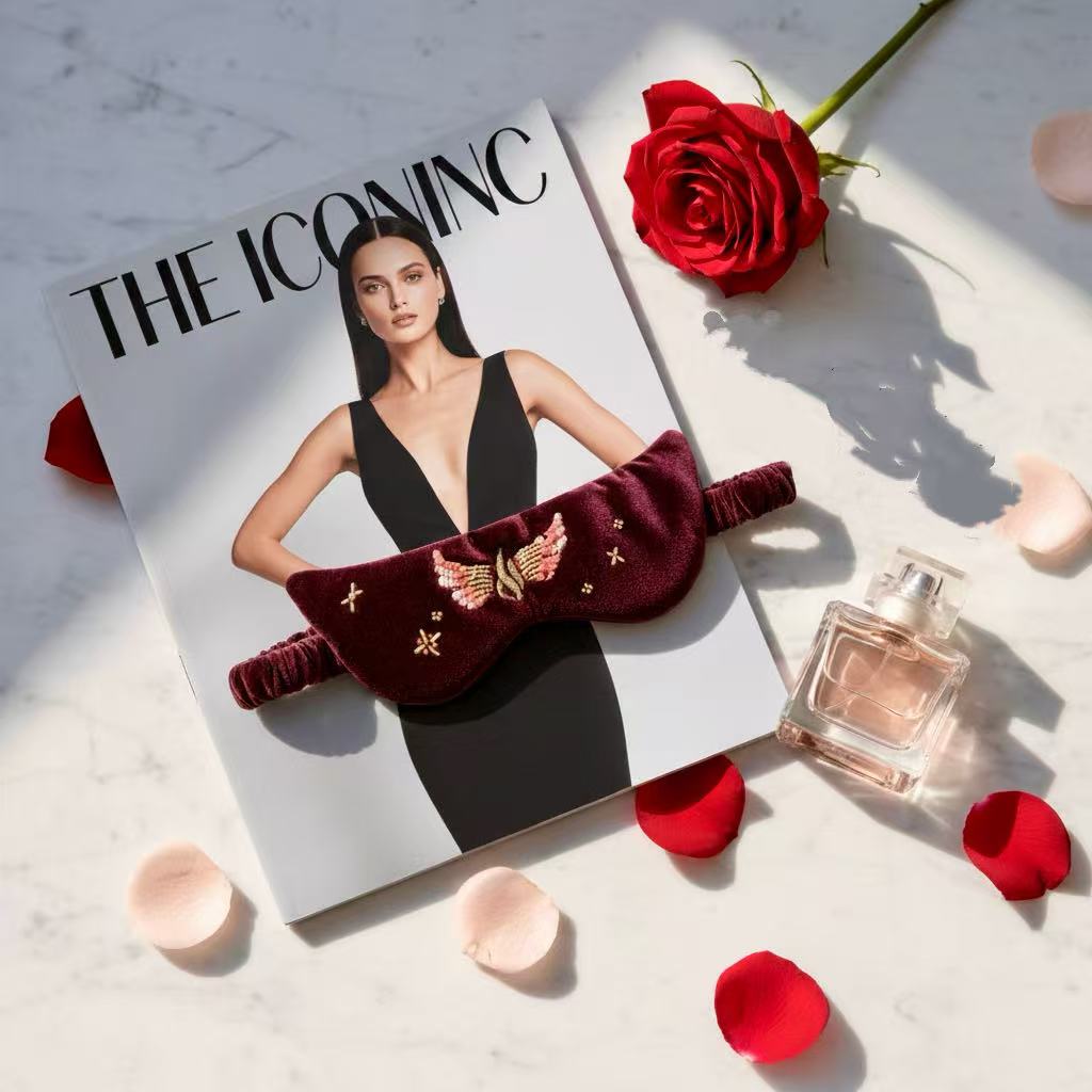 Embroidered angel wings on this velvet eye mask inspire restful empowerment. The soft velvet feels gentle on skin, while hand-beaded wings represent strength and grace. Designed to enhance your nightly routine, it promotes emotional well-being and peaceful sleep